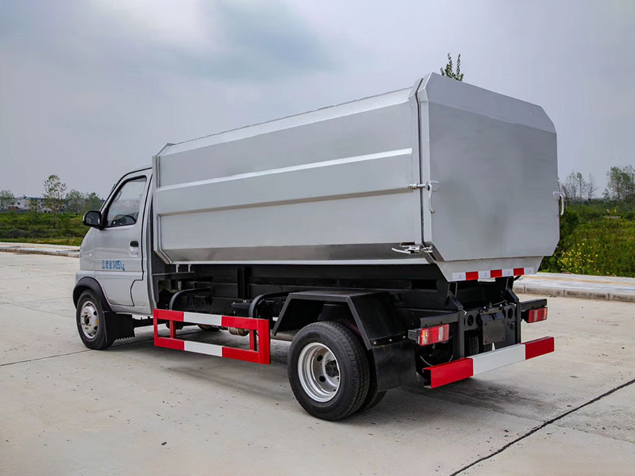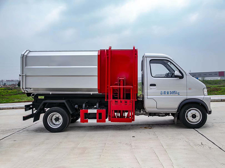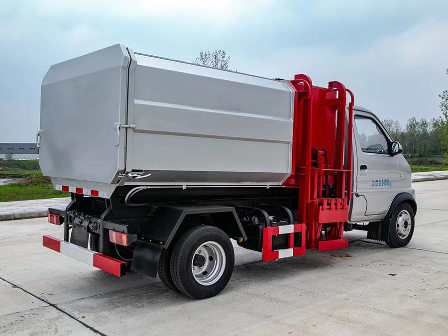 上裝配置:箱體采用邊三底三碳鋼板制作,箱體前部側(cè)面帶有掛桶提升機(jī)構(gòu),可自動舉升垃圾桶倒入垃圾,120/240L塑料桶通用,提升機(jī)頂部自動翻蓋,帶有手動油門,提高作業(yè)效率,箱體底部雙液壓缸舉升自卸,箱體尾部設(shè)有擋水槽防止污水外泄,尾門裝有橡膠密封條,防止二次污染。。