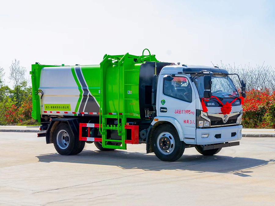 箱體有效容積約11立方米,采用邊三底四Q345錳板,弧形耐壓箱體,側裝拉桿式提升機構,可提升120L/240L垃圾桶,帶全推裝置,后門液壓鎖緊,整體密封效果好,尾部帶污水箱排污口,采用威森博樂全套液壓系統,帶電控制系統,手動室外操作。
