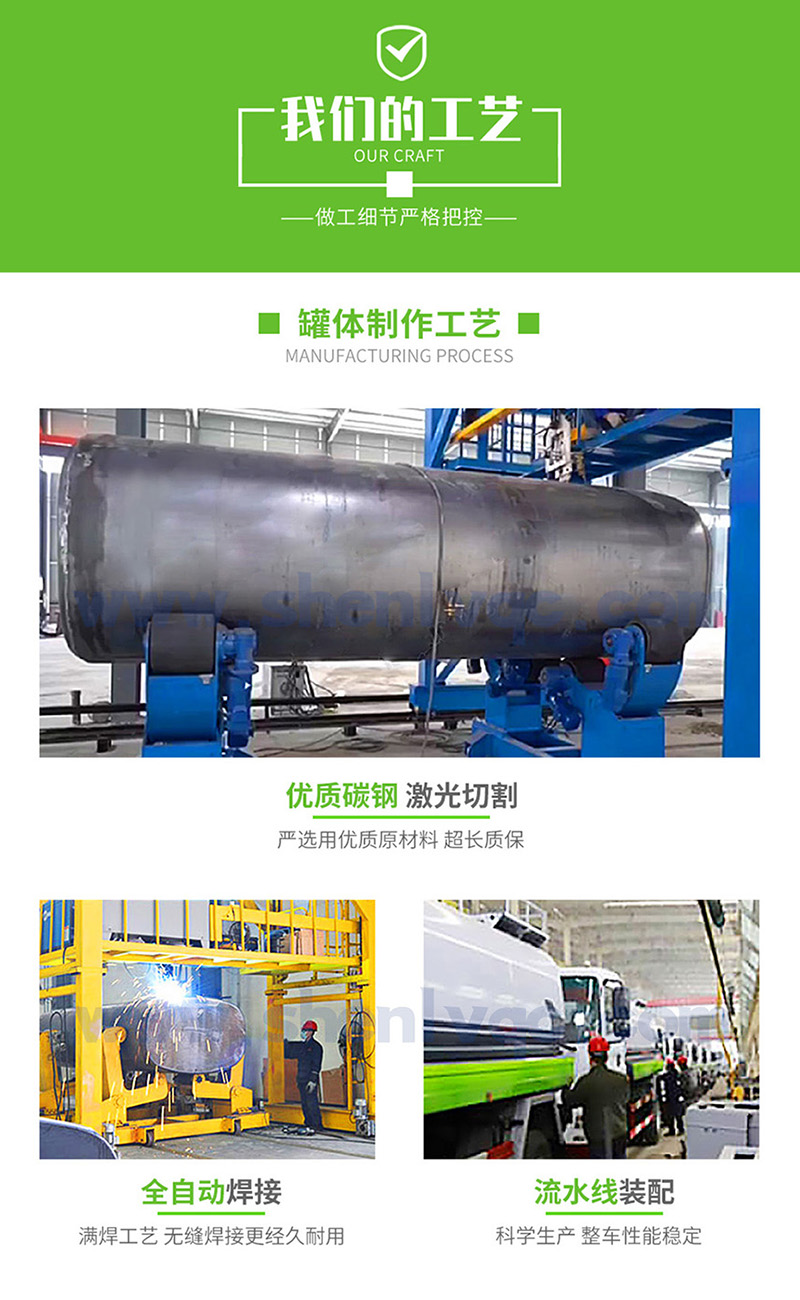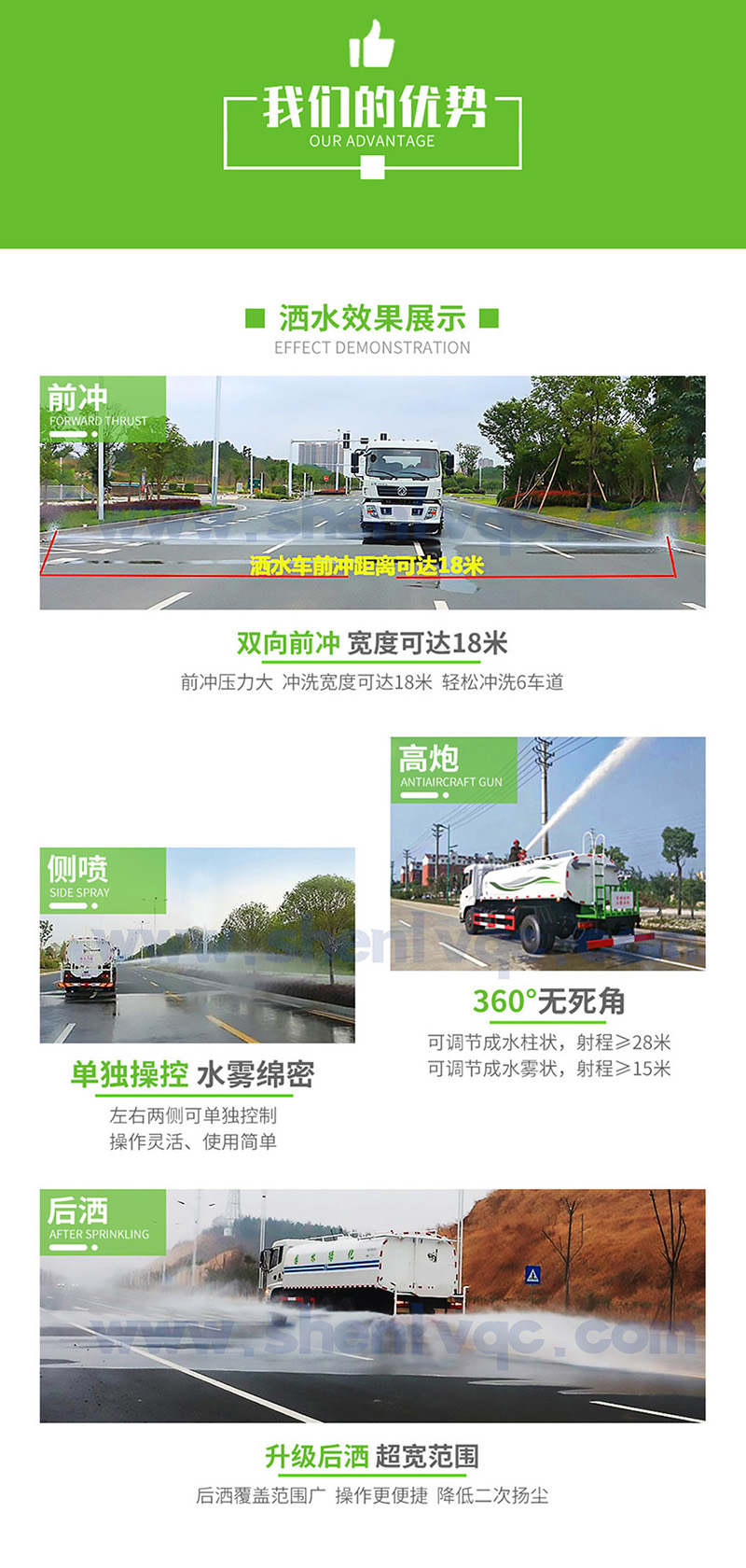 ①大鴨嘴前沖噴頭,萬向前沖球閥;②選裝氣動球閥駕駛室內(nèi)控制;③選裝自動灑水炮;④選裝LED箭頭燈,長條警燈;⑤選裝食品級304不銹鋼罐體;⑥選裝后加大工作平臺+霧炮機組;⑦選裝新款標準化外形。 |